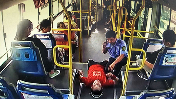 8月2日,市公交公司駕駛員王強像往常一樣,駕駛著6路公交車行駛在線路上,當(dāng)車行駛到天貿(mào)城站時,一男子突然倒在車內(nèi),王強見狀立即將車緩慢??吭谡九婆?,向暈倒男子方向跑去,一邊安撫他防止其睡著,一邊撥打120急救電話。這就出現(xiàn)了文章開頭的一幕。
